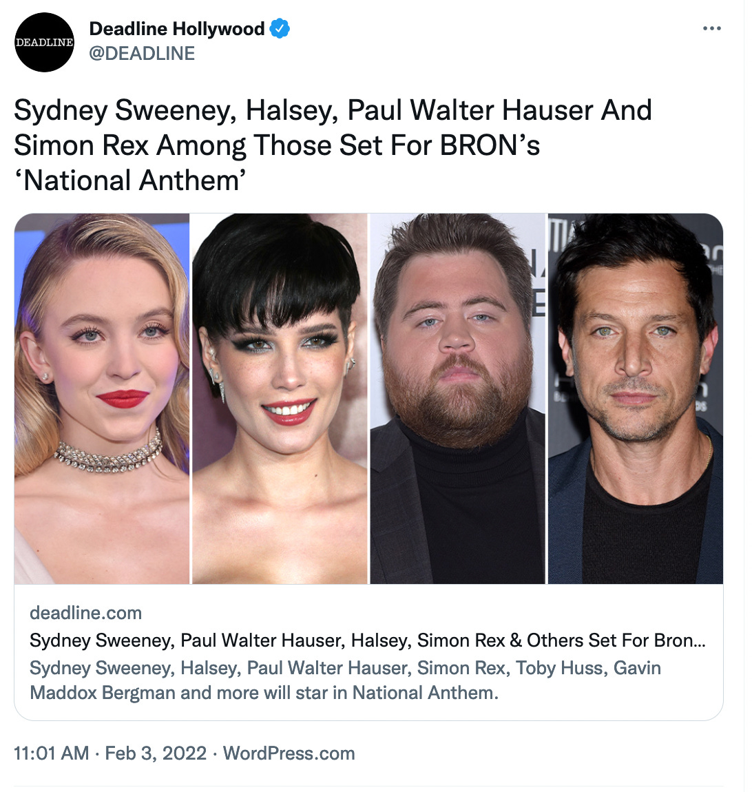 Obviously, I still don’t know how National Anthem is going to turn out. The saying is that any film getting made is a miracle. I’d add, getting an original, non-IP neo-western ensemble film made during a pandemic in 2022 has taken a series of miracles. And for it to turn out as great as I know it can be will take a whole new sequence of miracles going forward. But it’s nice to be in that position.